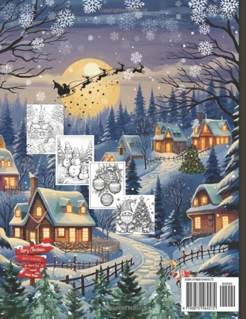 Feel the enchantment of Christmas as you color delightfully decorated trees, lots of animals, stocking, nutcrackers, Bells, Balls, Snowman, snowbound cottages surrounded by evergreens and snowmen. Featuring Christmas trees, wreaths, gifts, presents and cookies, for good ole St. Nick.